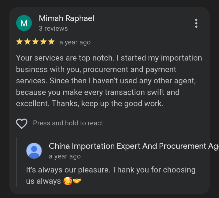 Because we combine years of China importation experience with genuine care for your business success. We don’t just process orders, we provide professional guidance, quality assurance, complete transparency, and peace of mind. Our clients stay with us because we make importation easy, safe, and profitable. Try us once, and you’ll understand the difference.